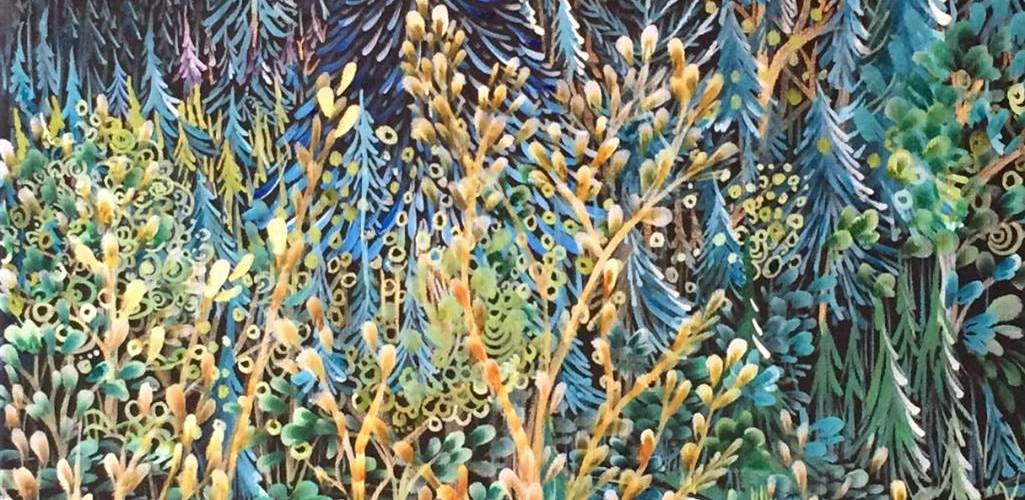 Psychedelic Plants This is a crop of a larger painting. I discovered a new love of painting on black canvas. This is piece has since been sold. Like Loading... Related
